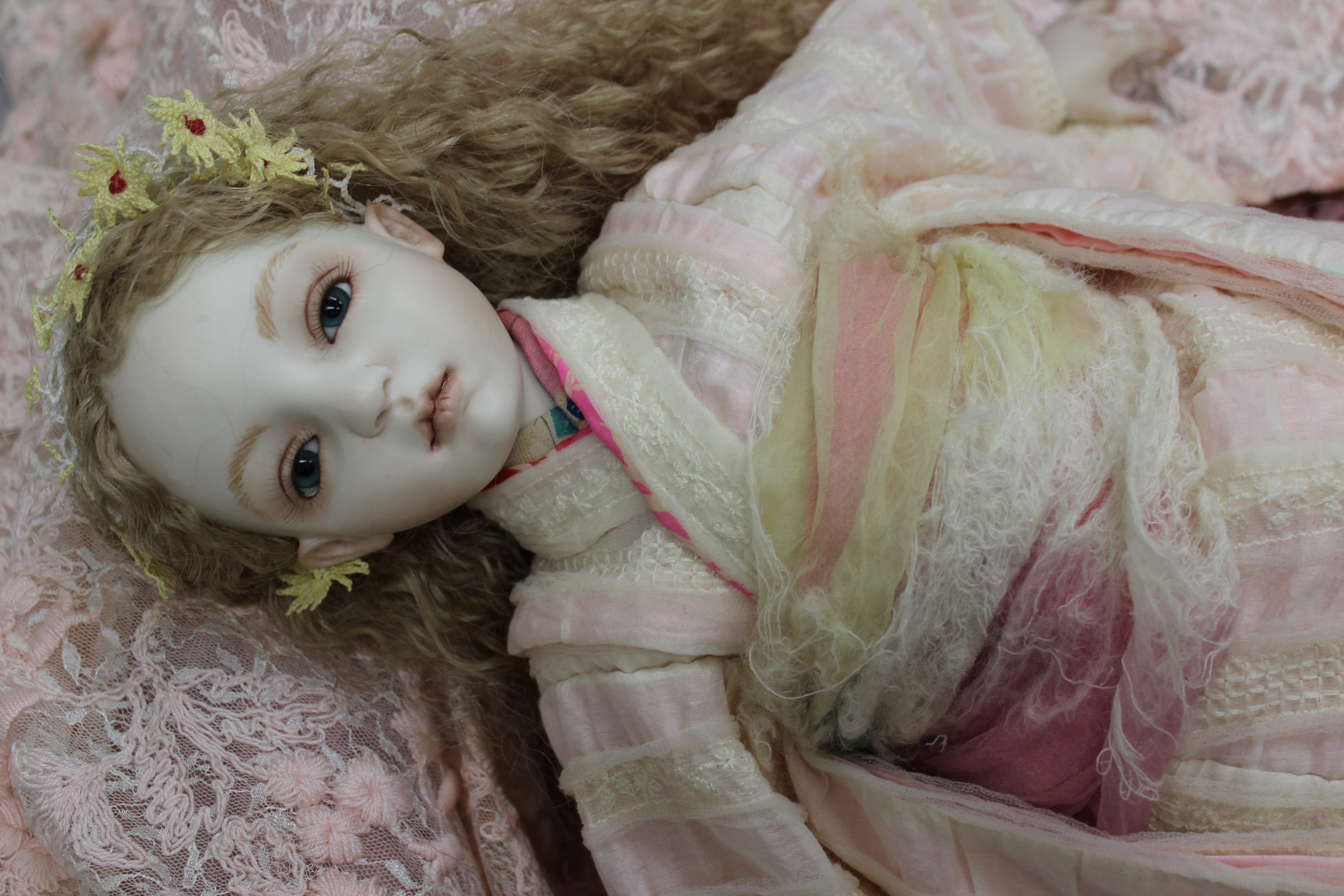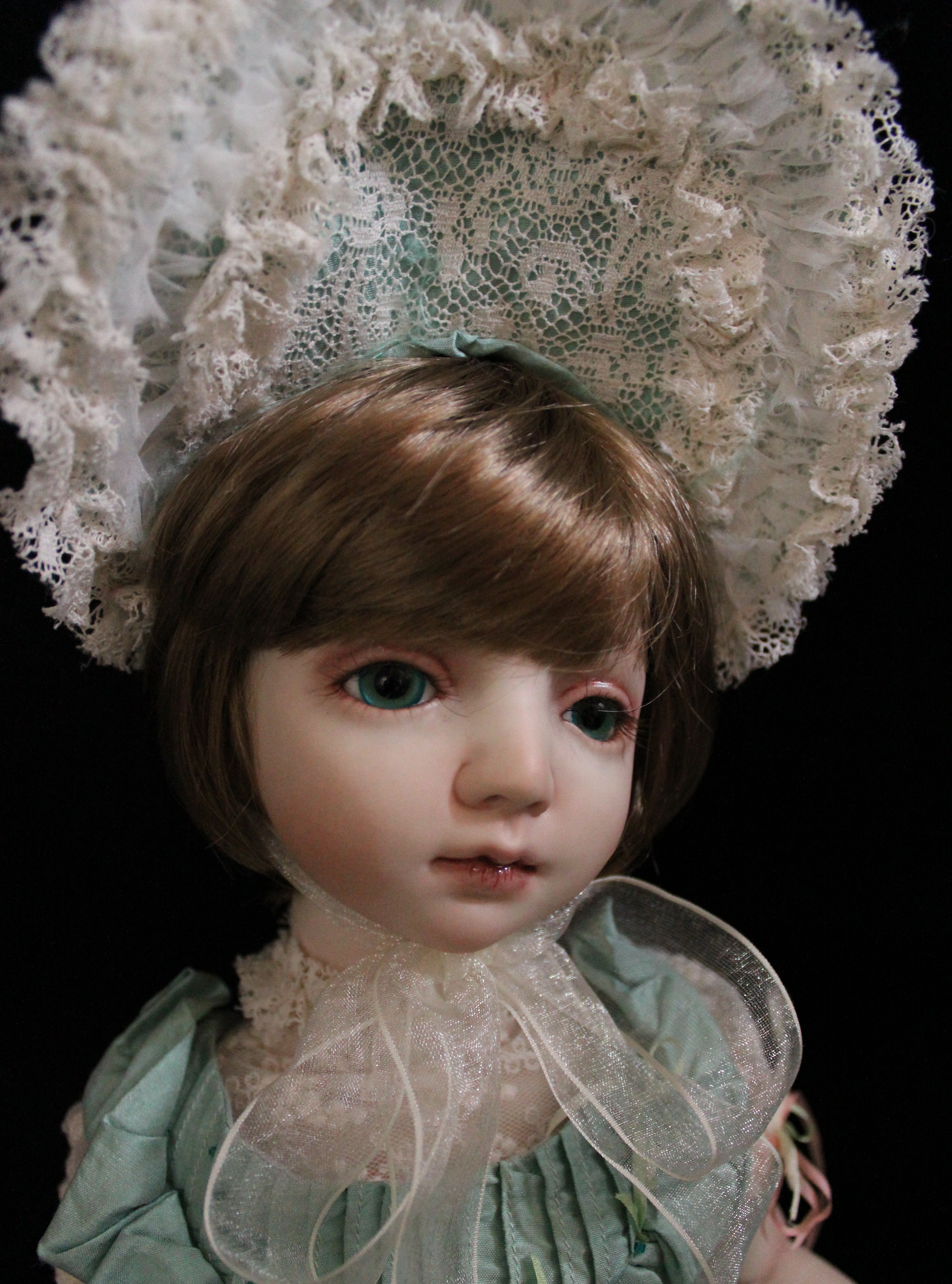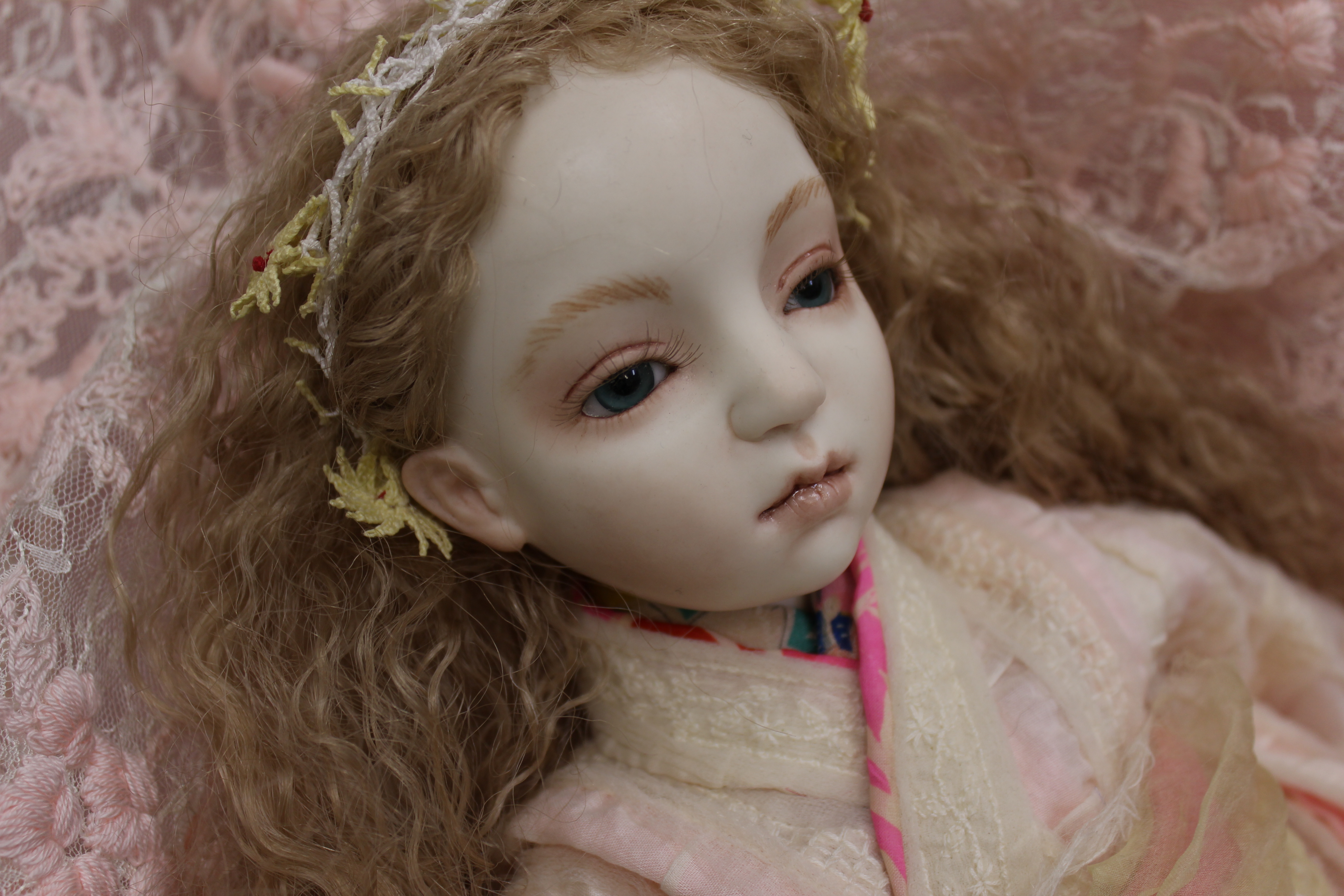 70センチビスク・グラスアイ・ウィッグ・自作ドレスヘッド飾り